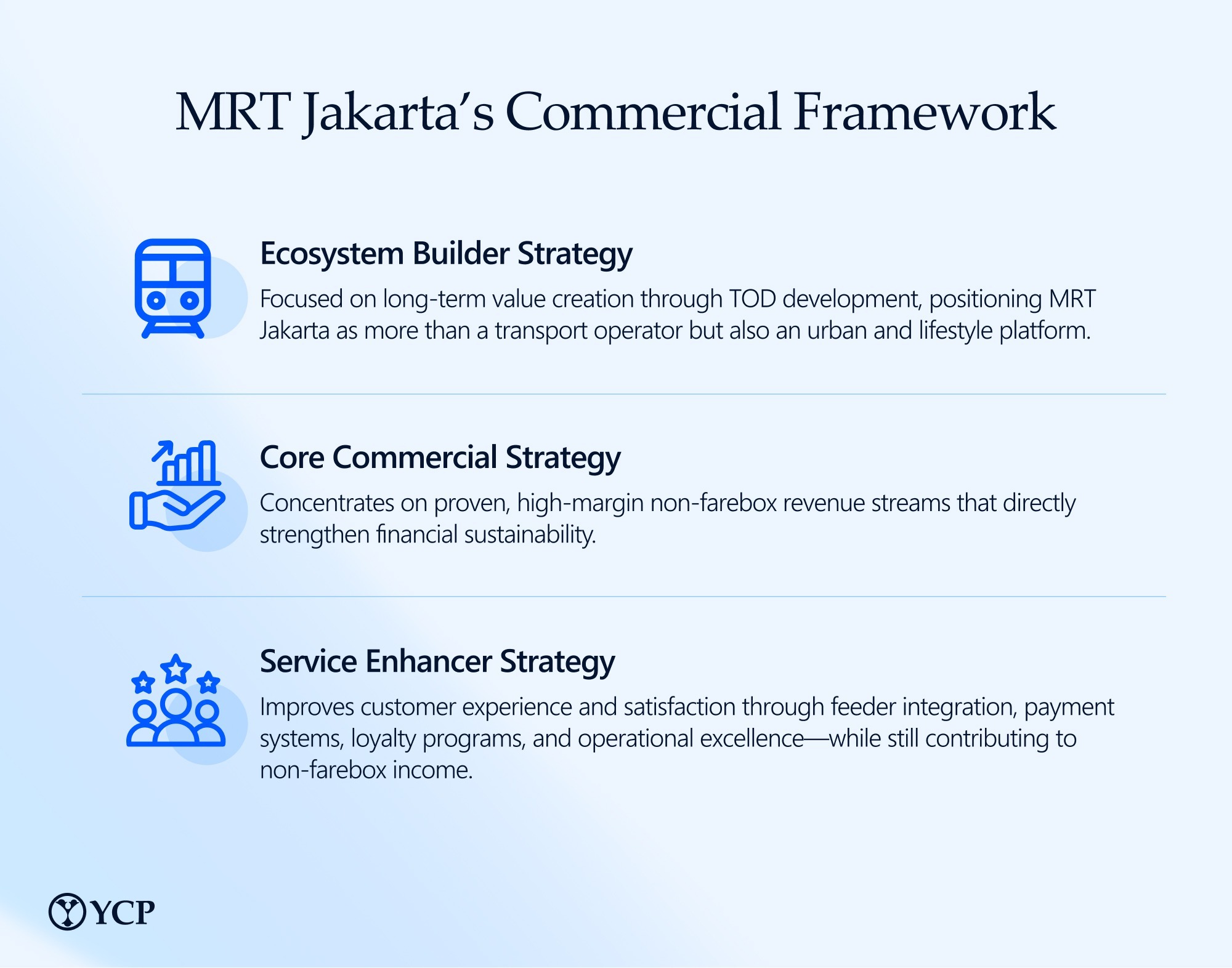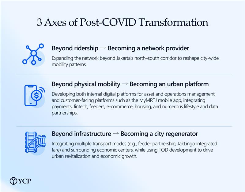 When MRT Jakarta entered the post-pandemic recovery period, the challenge was larger than restoring ridership. The city’s rail operator was navigating declining mobility, pressure on non-ticketing revenue, and the urgent need to unlock long-term value from transit-oriented development (TOD) rights granted by the Jakarta government. At the same time, it was preparing for the next phase of network expansion, a critical step in shaping Jakarta’s future mobility landscape.