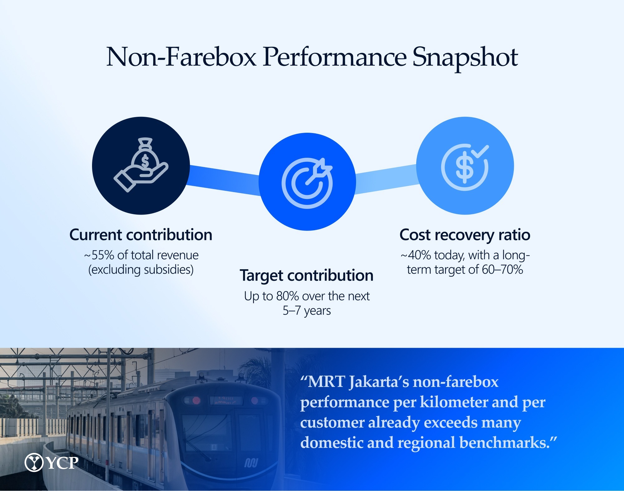 Farchad Mahfud: MRT Jakarta has built a strong non-farebox revenue base compared with other public transport operators, both in Indonesia and across the region. Even with a relatively short, 16-kilometer network today, the non-farebox revenue generated per kilometer is already higher than most domestic peers and in line with leading regional metro systems.