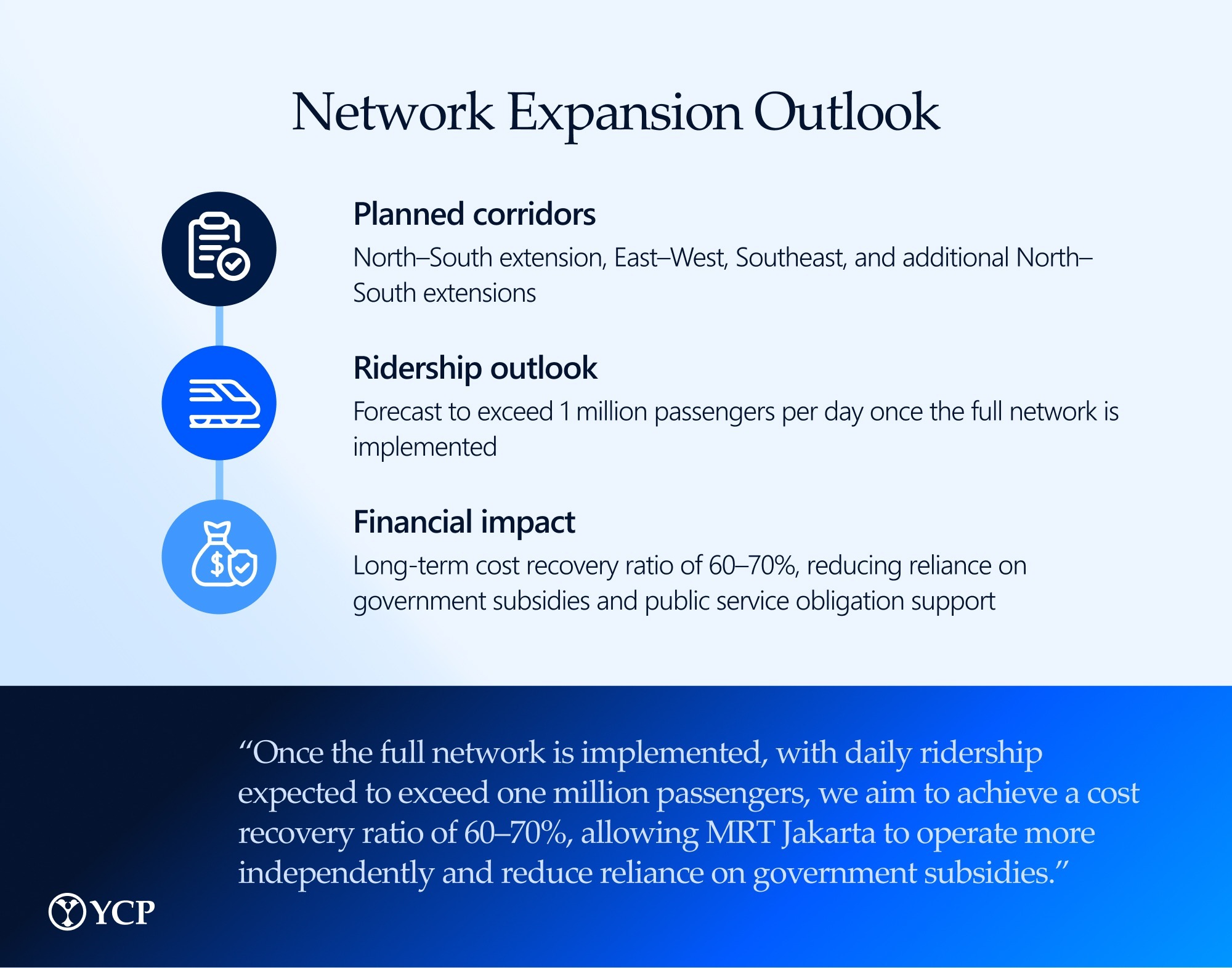 Karambir Anand: What are your strategic priorities for MRT Jakarta’s network expansion, and how will future lines reshape ridership, farebox recovery, and the overall business model?